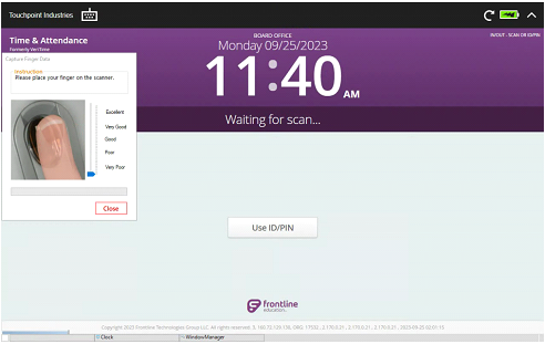 - Make sure the Biometric Scanning Window is visible on the Smartclock before trying to scan. It is required to be visible for the application to function.