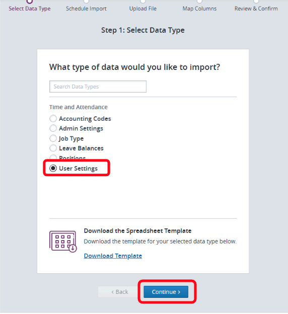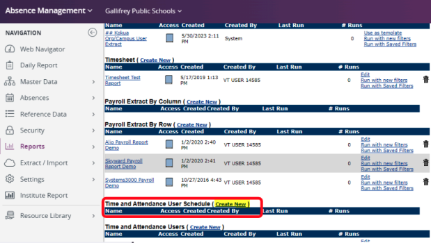 Scroll down to “Time and Attendance Users (Create New)” and click the “Create New” hyperlink