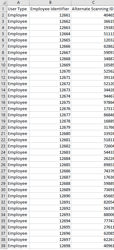 All of the employee alternate scanning IDs are now successfully entered into the system!