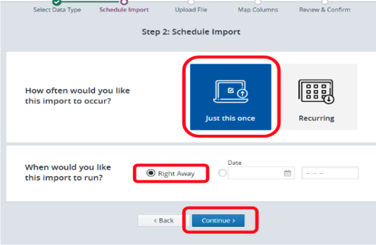 It is recommended to check the box for “Validate Only (Dry Run) to make sure the data is good before importing it.
