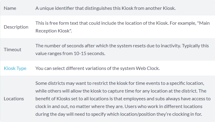 When creating Clock Kiosks, you can choose from six different kiosk types.