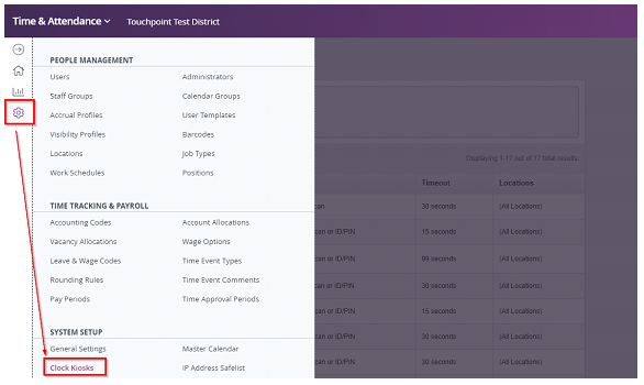 Log into the Frontline Time & Attendance portal. Click Configure on the left hand side then choose Clock Kiosks.