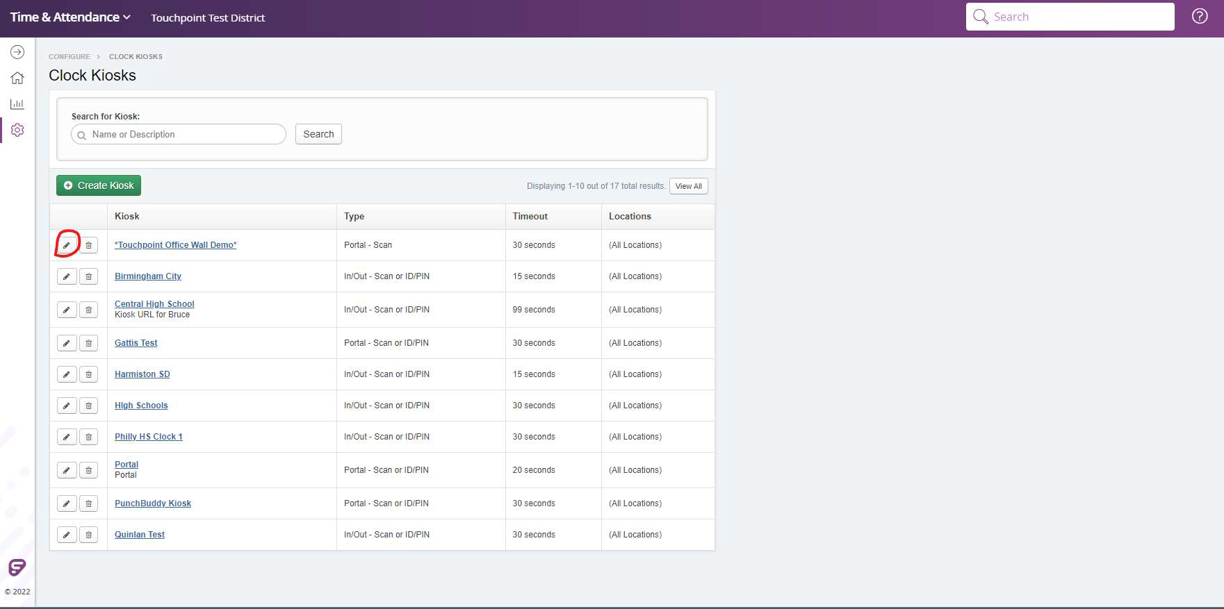 These kiosk configuration changes are made in the Time and Attendance portal.